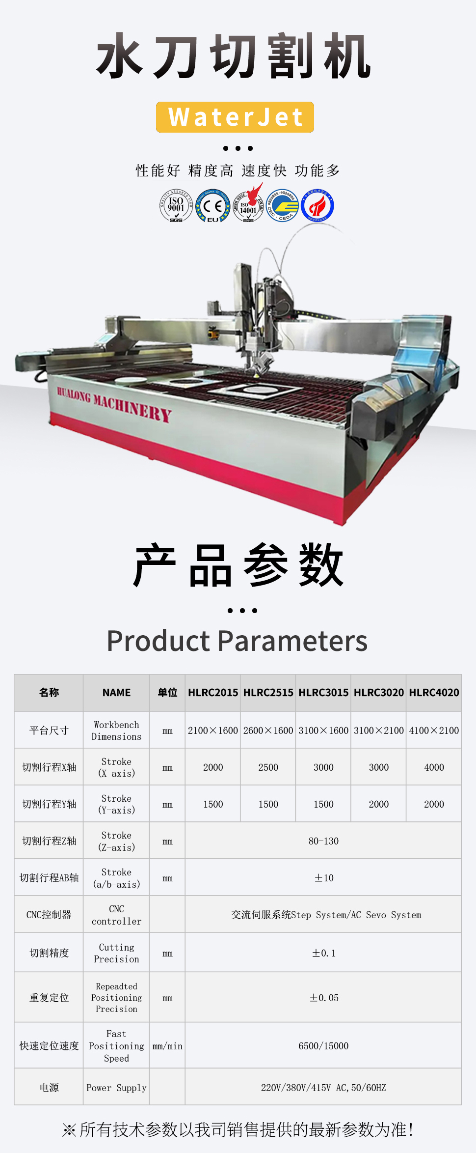 HLWJ2015/3020/4020五轴数控水刀切割机